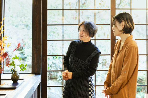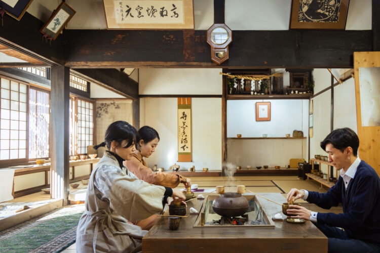 小石原焼と高取焼が一同に見学できることから旅行者の人気を集める福岡県東峰村小石原地区。黒田藩の御用窯として栄え、茶人・小堀遠州の指導を受けて発展した「高取焼」の窯元の中で、若いつくり手(15代窯嗣高取周一郎さん/高取由布子さん兄妹)が次世代を担う「八仙窯」を訪問します。ご家族にお迎えいただき、工房見学・抹茶体験・茶花体験を通して、茶の湯の世界を体感するひとときを過ごします。
