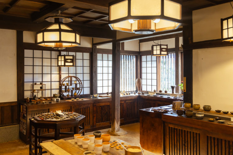 薄く繊細な作りと、独特の釉薬による美しい色合いが特徴の高取焼。ギャラリー裏手にある工房で、作陶のデモンストレーションを見学します。